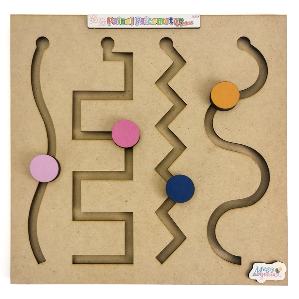 Painel Educativo Psicomotor 4 Linhas 28x28cm em MDF - Mega