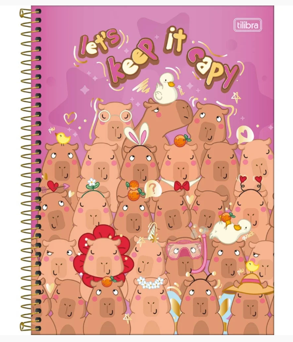 O Caderno Espiral Capa Dura Universitário 10 Matérias Capyclub 160 Folhas da Tilibra é perfeito para você que busca uma opção para organização da rotina de estudos com ilustrações divertidas de capivara.