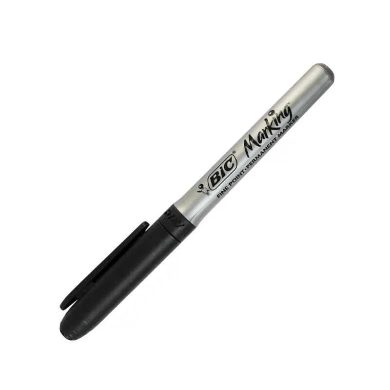 Marcador Permanente Bic Marking Tuxedo Black. Ideal para escrita em plástico, acrílico, metal, madeira, azulejo, papelão, foto e mais. Secagem rápida. Sobre a Marca As canetas mais clássicas são da marca Bic, e não tem como negar. Aqui na loja Lupel temos diversas opções dessa marca que é conhecidíssima em todo mundo. Conheça também a linha de lápis de cor da Bic.