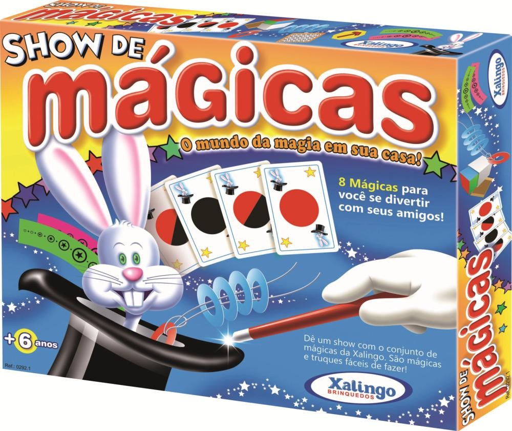 Leve um mundo de magia para sua casa em um passe de mágica. Com o conjunto de mágicas, a criançada se diverte para valer dando um show com as mágicas e truques fáceis de fazer. É um o jogo interessante e envolvente. São 8 diferentes mágicas para as crianças se divertirem com os seus pais ou amiguinhos como: as Cartas Mágicas, Quebra-Cabeça Chinês, O Nó Mágico, Caixa Mágica, A Seta Mágica, Bastões Ciganos, Adivinhe o Pensamento, O Mistério dos Cartões. O produto possibilita o desenvolvimento da atenção, percepção visual, raciocínio lógico além das habilidades motoras das crianças, criando um ambiente de socialização entre elas.